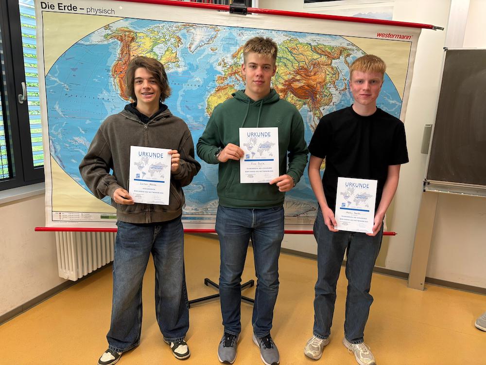 Besonders erfolgreich war Laurens Mäcke (10d), der den Schulsieg sowie den 3. Platz unter allen sächsischen Teilnehmenden erringen konnte. Nur knapp geschlagen geben mussten sich an unserer Schule Finn Bulik (12) und Martin Barth (12) – ausschlaggebend war hier die Schätzfrage nach der Länge des Rheins.