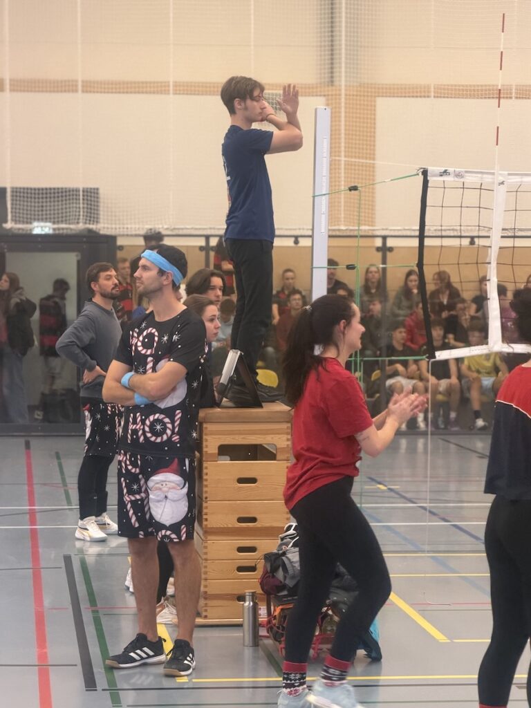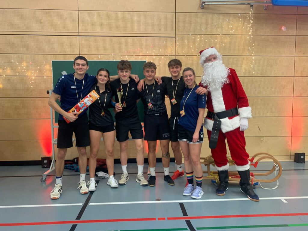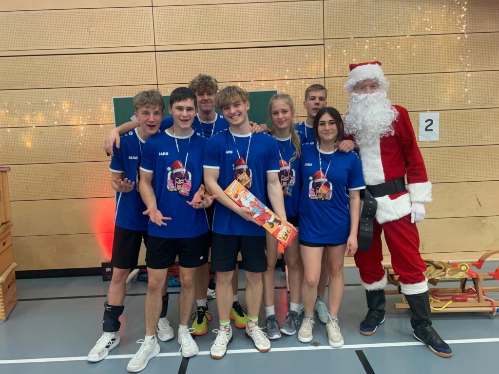 Im Finale standen sich zwei starke Teams gegenüber, von denen sich „Mein Lieblingsteam“ (Frau Eichstädt, Theresa Schneider, Violan Bähr, Lennox Leopold (alle Klasse 11), Louis Menzer, Vincent Alexander und Christian Jung (alle Klasse 12) am Ende deutlich mit 21:15 durchsetzten und den begehrten Weihnachtsstern errungen. „SiXSENTA’S“ (Gretha Glatho (11), Lotte Kuchenbecker, Robin Langer, Timoteus Lindemann, Jonas Wieprecht, Mika Rösler und Wenzel Strauch (alle 12), die ebenso als Favoriten galten, können dennoch stolz auf diesen zweiten Platz sein. In einem hochdramatischen Halbfinale scheiterte „La Schmetta Lametta“ (Frau Brandenburg, Frau Wünsche, Herr Wünsche, Herr Zechel, Herr Korb und Herr Potthoff) an „Mein Lieblingsteam“ knapp und gewann im Spiel um Platz 3 die Bronzemedaille.
