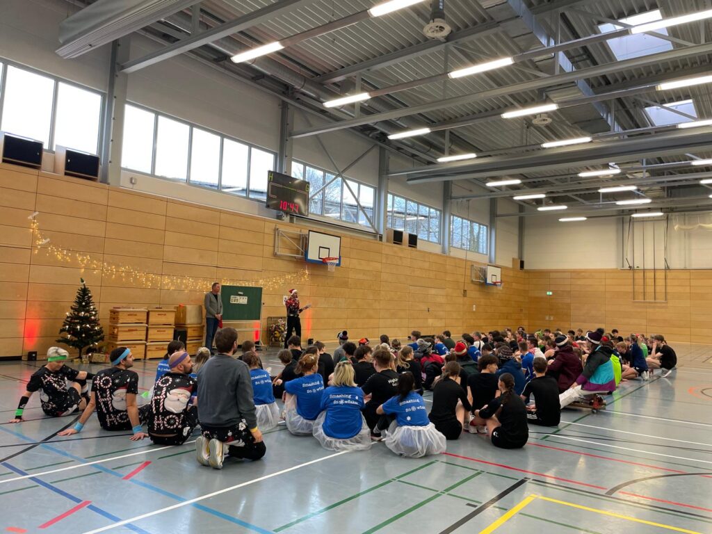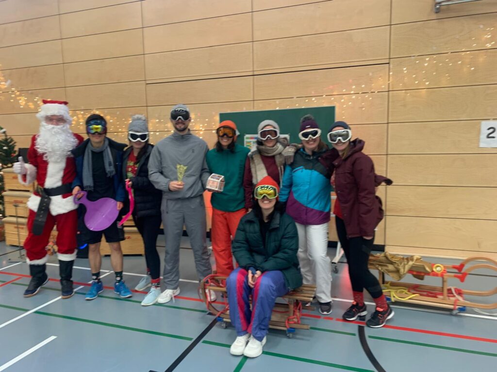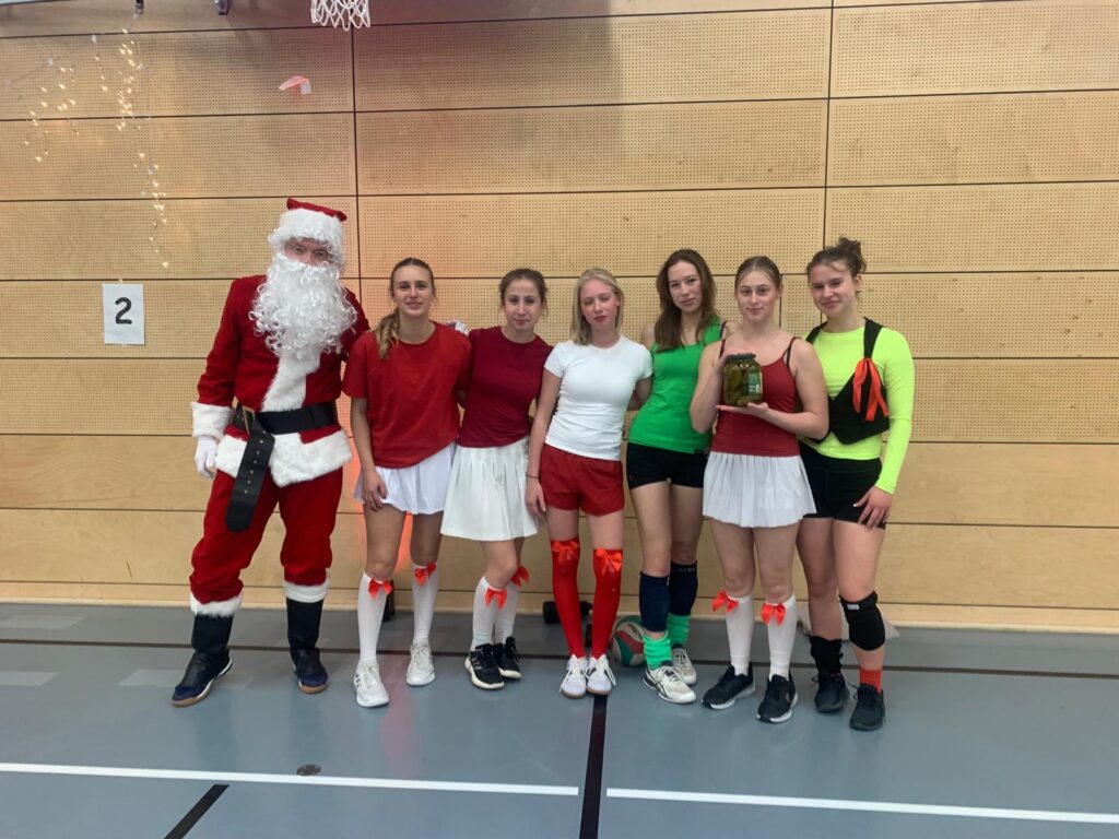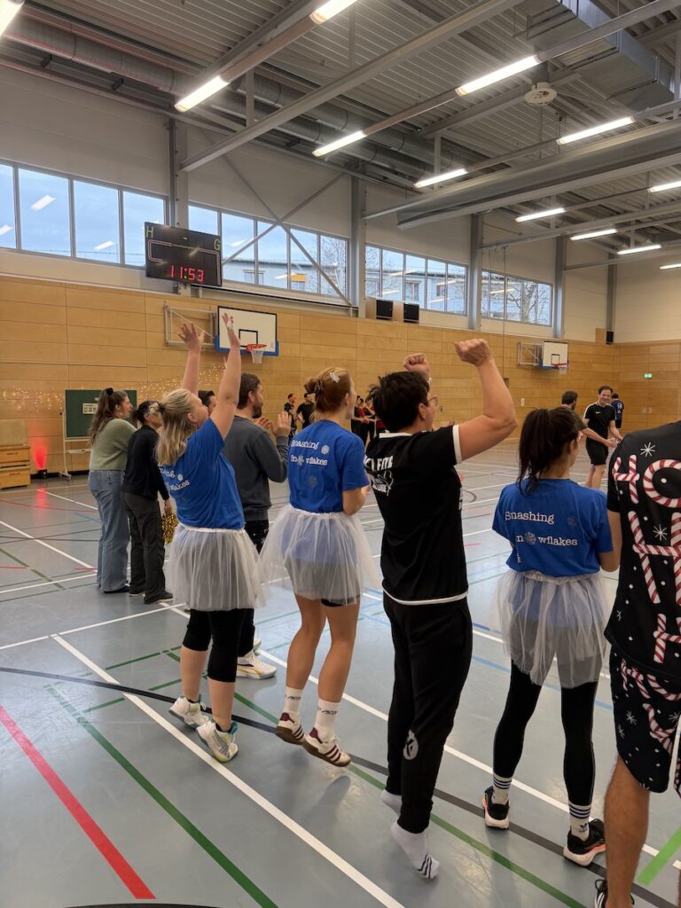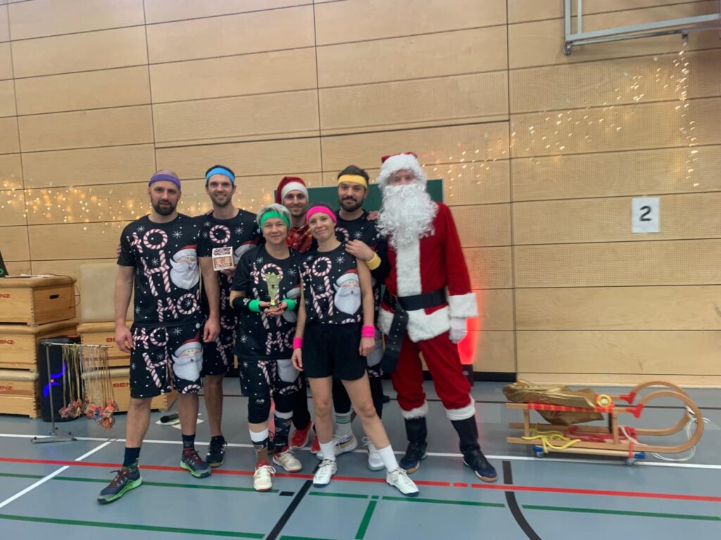 Nicht weniger spannend wurden die beiden Sonderpokale umkämpft. Mit ausgefallenen Outfits überzeugten gleich die Hälfte der Mannschaften. Die meisten Stimmen aller sechszehn Kapitäne und Kapitäninnen vereinte am Ende „Sleigh the Game“ (Frau Schuknecht, Frau Engelmann, Frau Surek, Frau Kutschinski, Frau Röhrig, Frau Zappe, Herr Geisler und Herr Rüffert) auf sich. Das aufwendige Wechselkostüm für Spiel- und Pausenzeiten war ein echter Hingucker und sorgte für beste Unterhaltung.