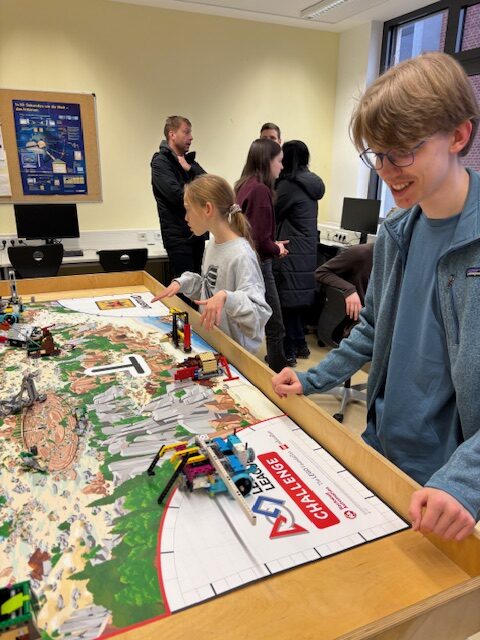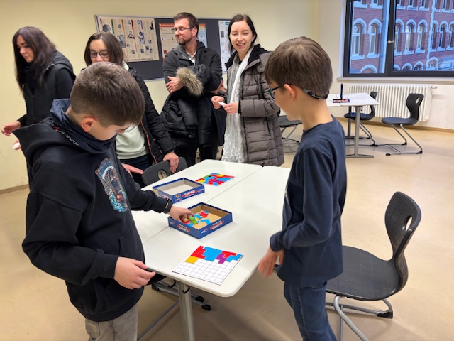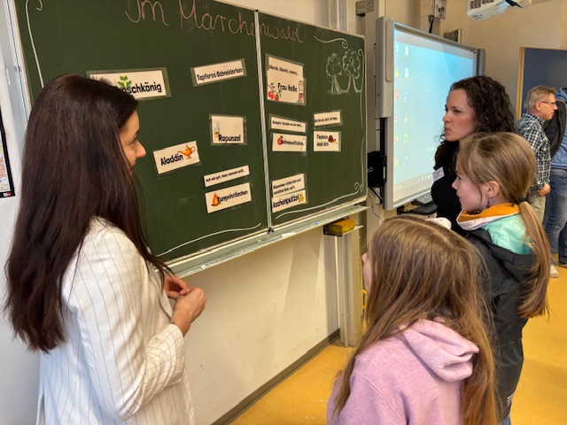Im Anschluss haben unsere Gäste das Schulhaus erkundet und sich verschiedene Räume angesehen, die je nach Fach besonders gestaltet wurden. In jedem von ihnen gab es fachspezifisch zahlreiche kreative Möglichkeiten, Rätsel und Spiele für die Kinder zum Ausprobieren.