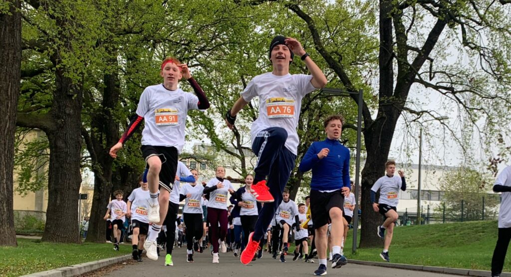 Wie jedes Jahr im April steigt mit dem Leipzig – Marathon eines der großen Sport-Highlights der Messestadt. Die Veranstalter hielten, was sie versprochen hatten. Leider tat dies auch der April. Von eiserner Kälte wie vor zwei Jahren bis hin zu tropischer Hitze im Vorjahr kennen wir nahezu die ganze Bandbreite des Wetters. Der bereits vorher angesagte Dauerregen am heutigen Wettkampftag, welcher mit Sicherheit einige Laufwillige abschreckte, gehört nun wahrlich nicht zum Wunschwetter eines jeden Läufers. Dennoch stellten wir mit 196 Finisherinnen und Finisher wieder das mit Abstand größte Feld aller 40 startenden Oberschulen und Gymnasien aus dem Großraum Leipzig. Auch wenn der Regen dann Gott sei Dank wartete bis unsere Siegerehrung abgeschlossen war, können wir alleine darauf mächtig stolz sein.